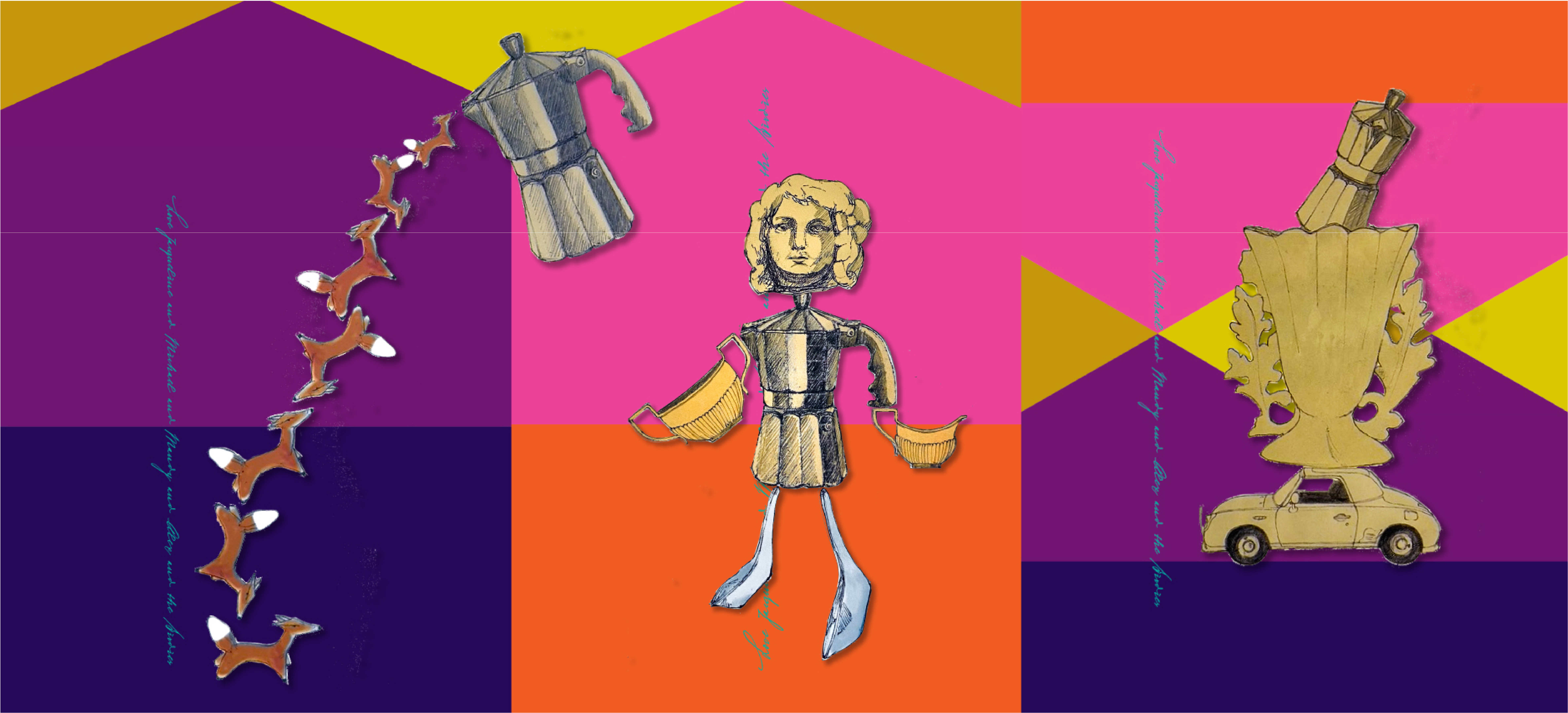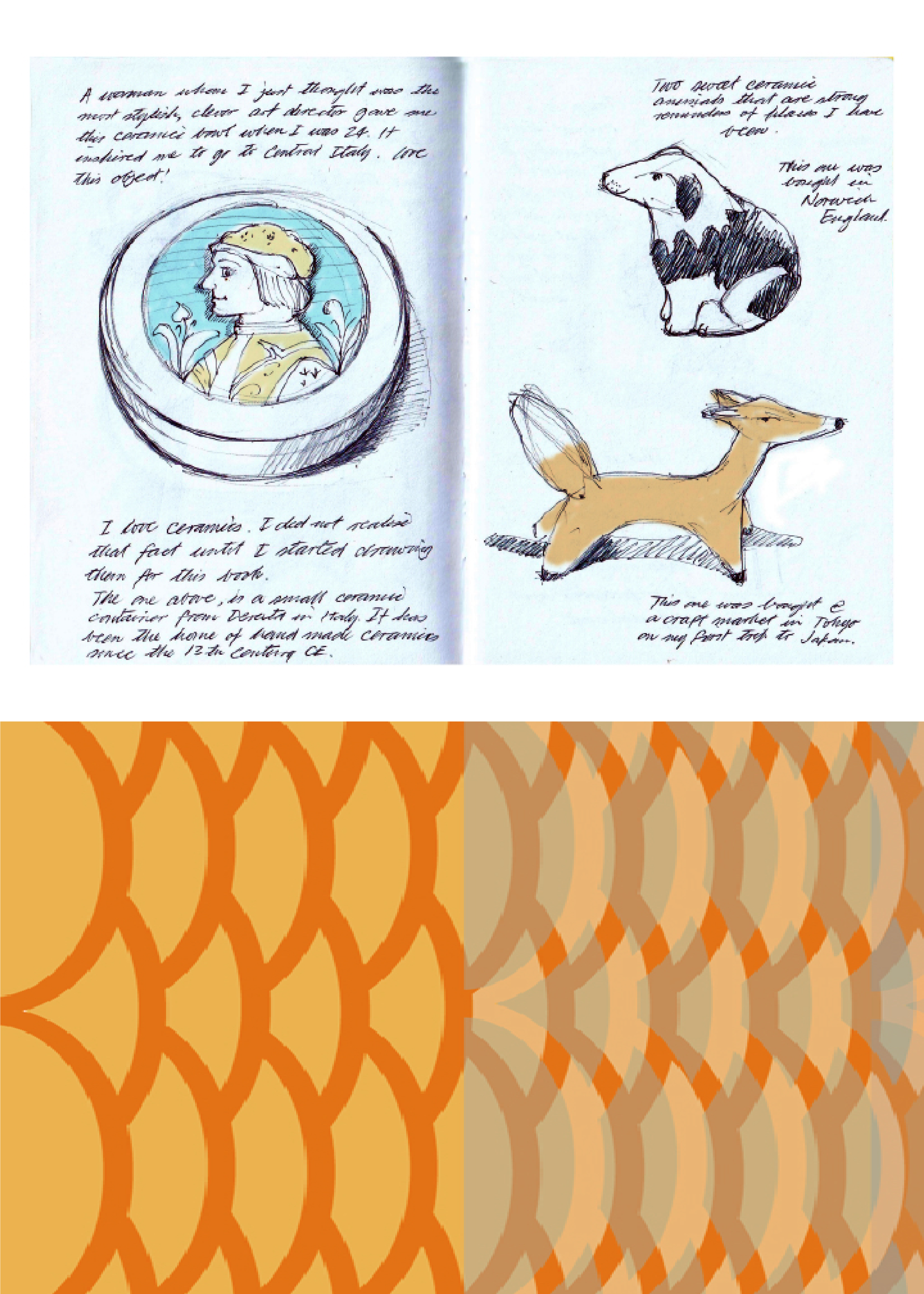 1.One of the spreads within my sketch book entitled ‘Things That I love’ for The Sketchbook Project. Brooklyn Art Library. 2. Panel design for The Artery Gallery corporate identity program.