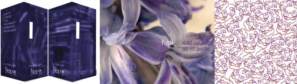 1.Concept development for Freedom Furniture investigating a brand new visual language for alll visual communication related to the company which included a new Visual identity mark, all packaging, all in-store promotional material, livery and ultimately the rollout across both internal and external audiences. 2. Photography and design for cover spread of the ‘Purple’ colour book for Shiftazine. 3. Visual identity and packaging pattern for Sydney based chocolate company Genie Chocolates.