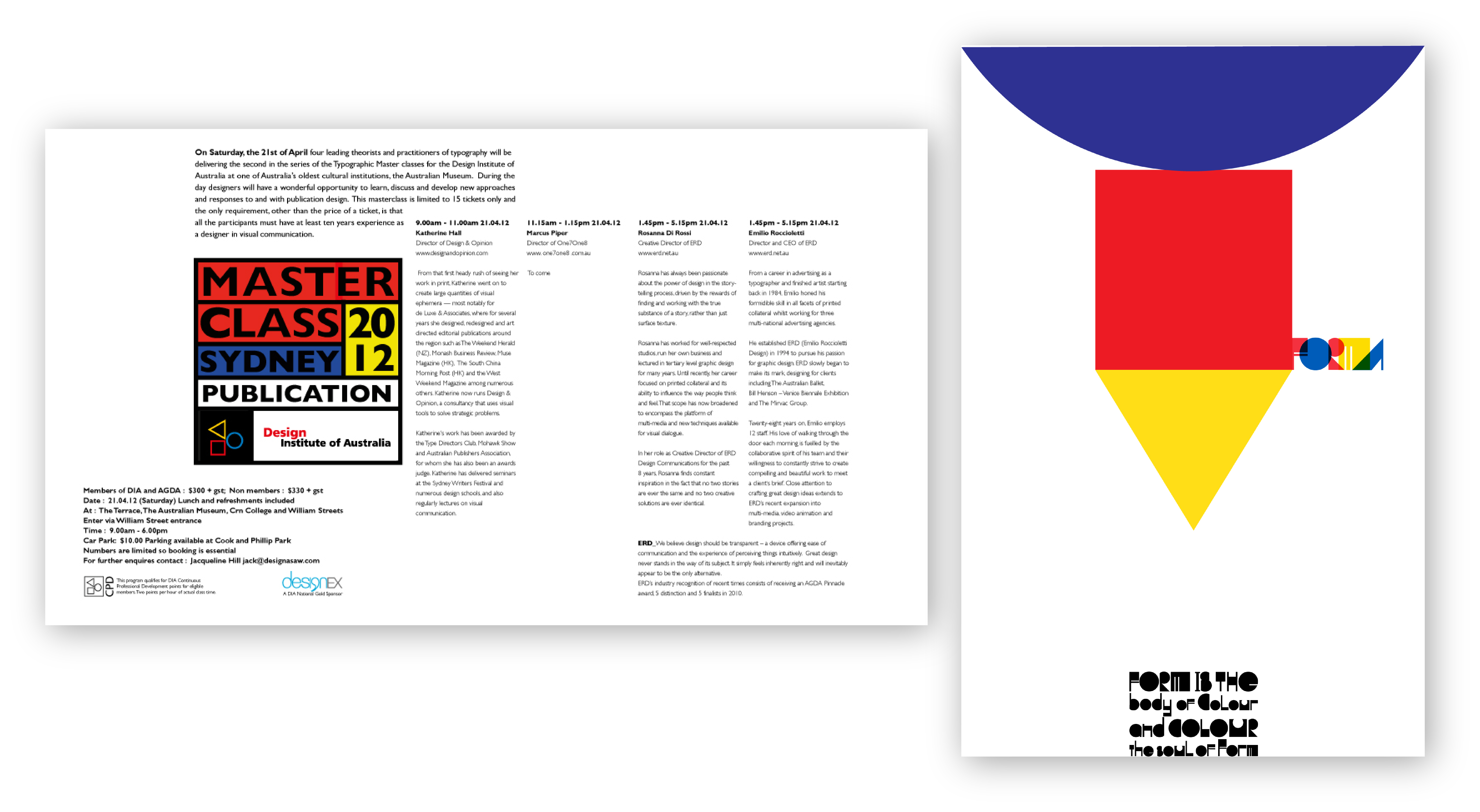 1. Design and delivery of the Master Class series for the Design Institute of Australia. Print and online material. 2. Poster design to promote the new type face FORMA