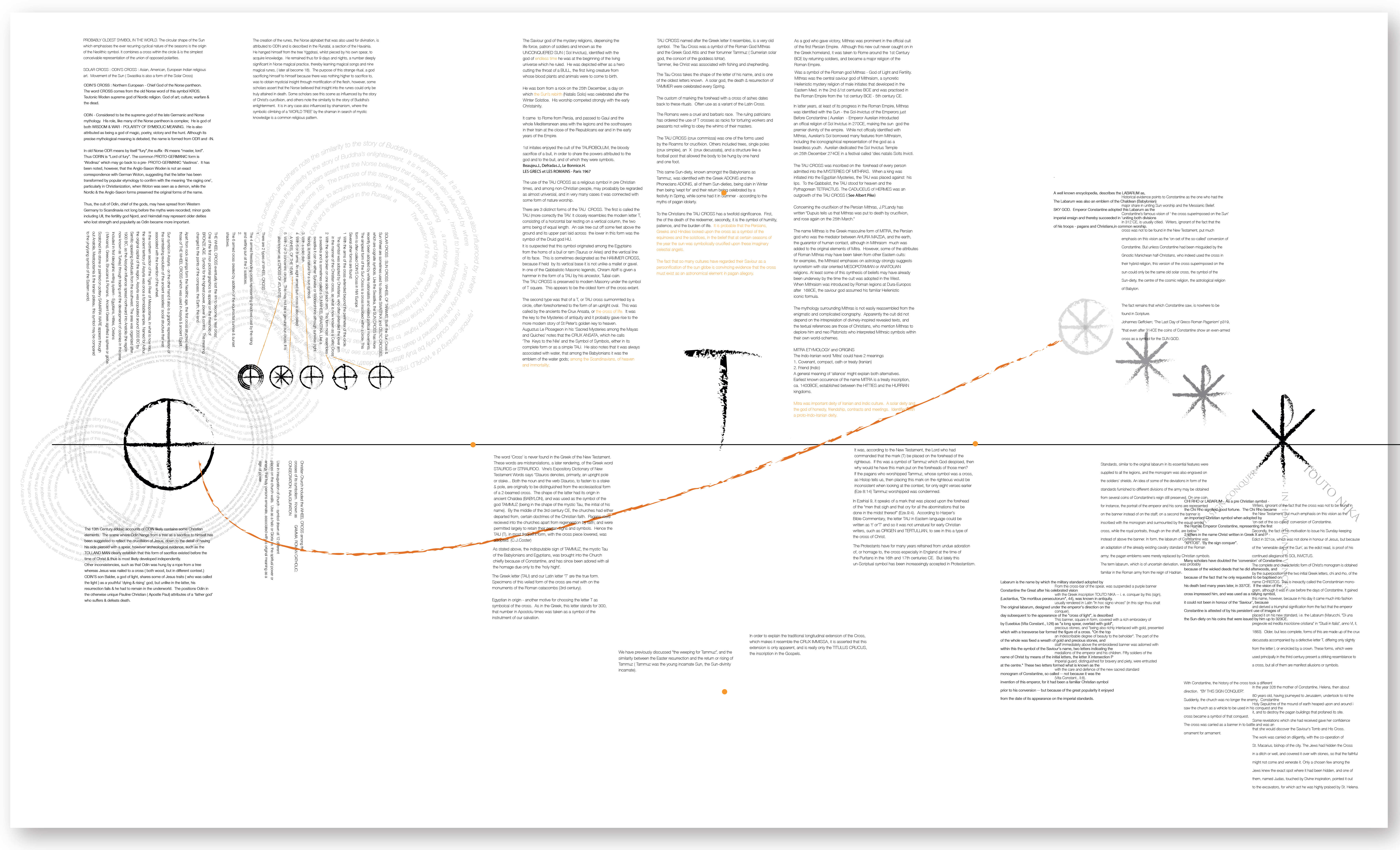 2. Typography exploration and visualisation of research conducted in relation to the historical origins of different significan graphic symbols and devices and the numinous associations found within these archetypal symbols of humanity.
