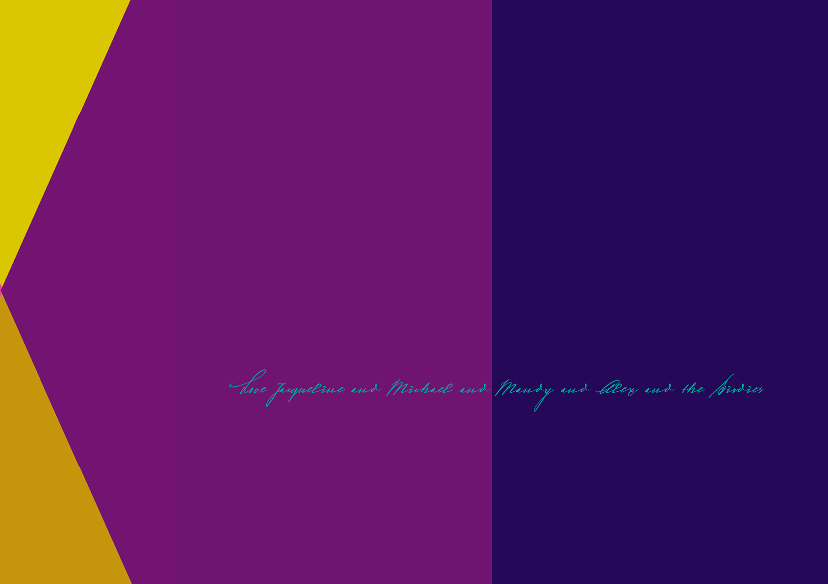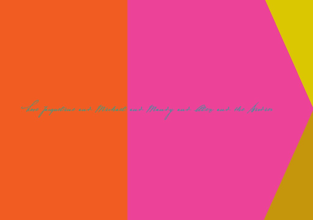Every year I design a Christmas greeting. These greetings used to be printed and then posted to all the people I had had dealings with, either personal, friendly or professional.. Now these greetings are sent on-line. This is such an improvement in time and money out put. Colour for me is the key and the message is reflective of what ever is happened at that time in the world, either my own or the greater outside world.