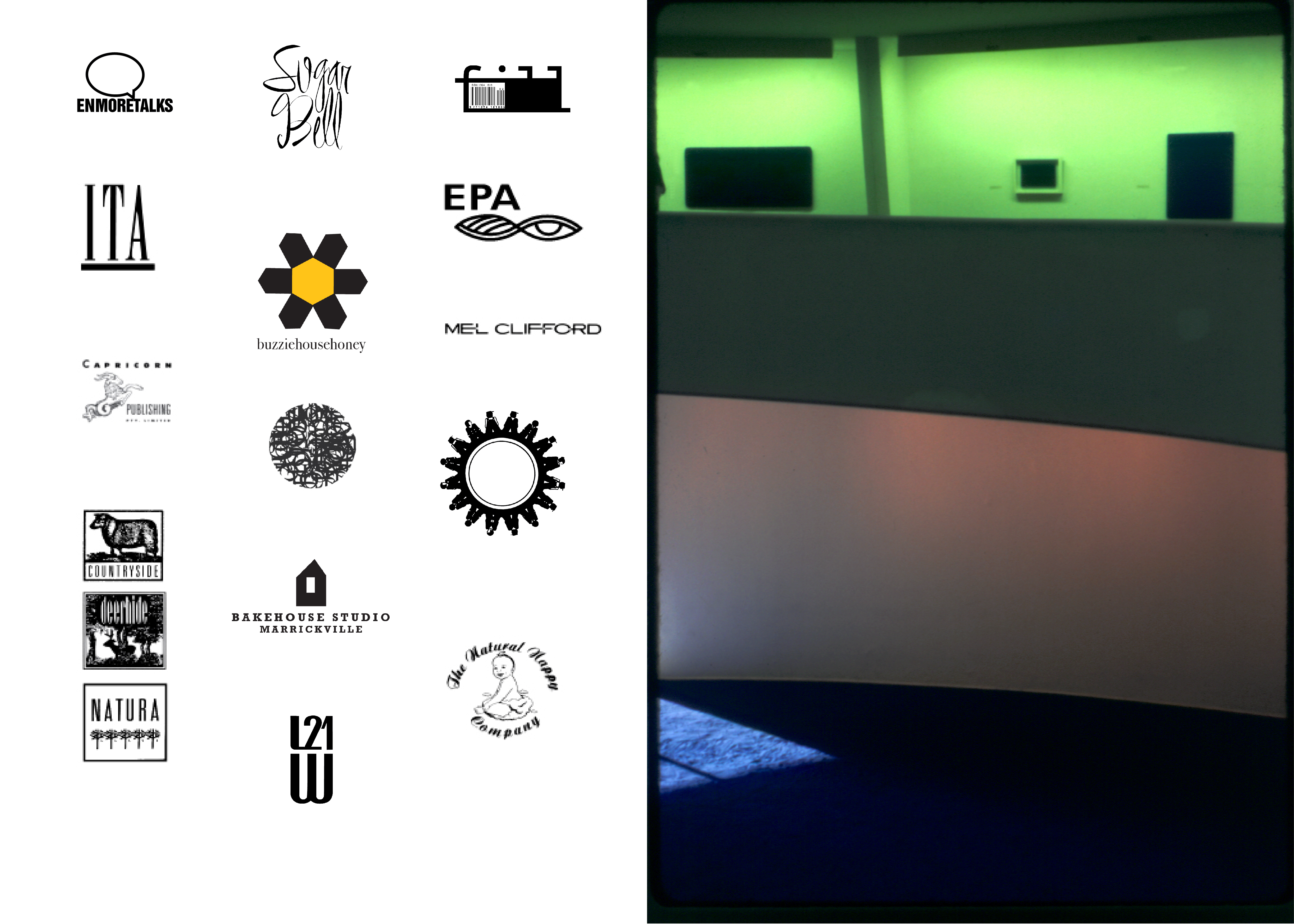 1. A selection of Visual Identity Marks (VIM). Enmore Talks EDC; Sugar Bell Pastries; ‘fill ‘the zine; ITA Buttrose flag ship magazine; BuzzieHouse Honey; EPA Environmental Protection Authority Australia; Workcover Authority; BakeHouse Studio Ceramics; 2. A trip to New York, a visit to the Guggenheim Museum, an observation of colour and shape..