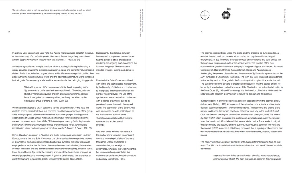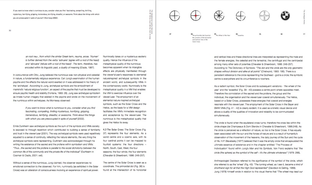 2. Double Page Spread for the publication ‘Numinosity. What gives Visual Identity Marks their sway’. 3. Cover design for the publication ‘Numinosity. What gives Visual Identity Marks their sway’.