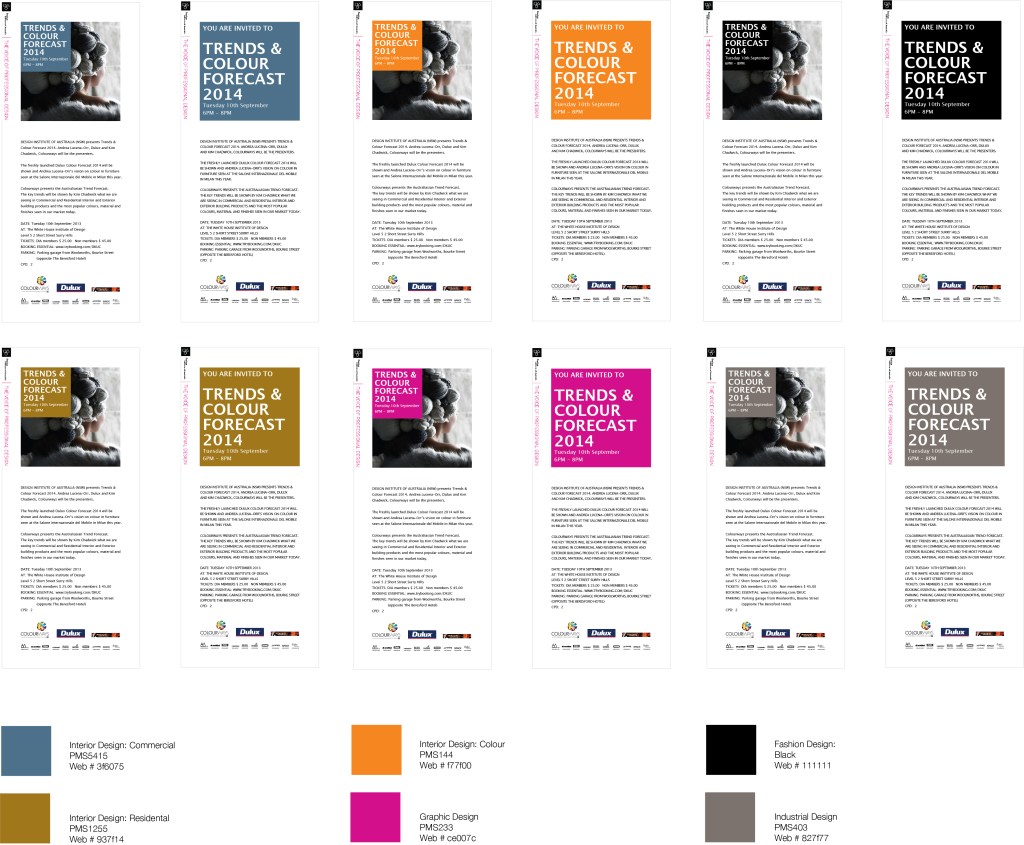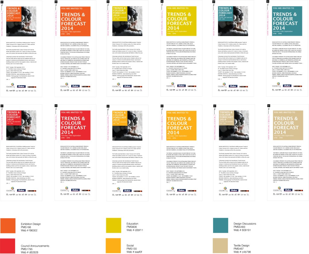 Master Class series for the Graphic Design portfolio of Design Institute of Australia council. Examples of the range of promotional material for print and on line use.